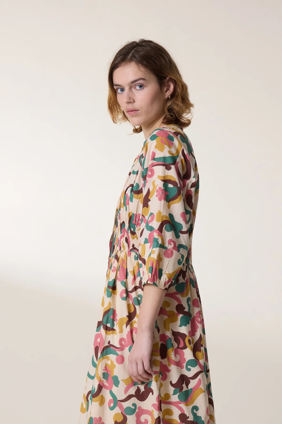The Roudy dress is an elegant flowing maxi dress, perfect for the season. Gathers at the waist and shoulders create volume and give the Leon & Harper woman a feminine silhouette.